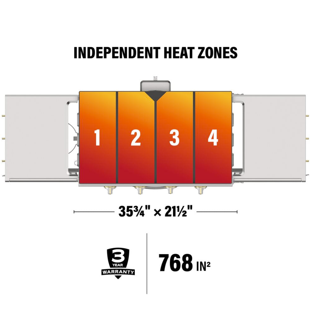 Four Independently Controlled Heat Zones – Cook mains and sides at different temperatures.