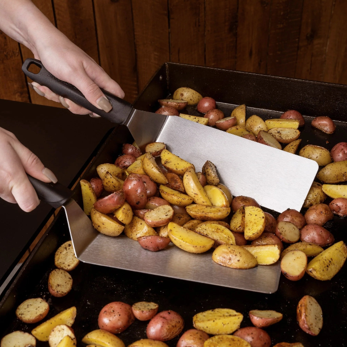 Start cooking like a pro from day one with the 5 Piece Professional Griddle Toolkit. This all-in-one set includes the essential tools for mastering breakfast, lunch, and dinner on your griddle. Featuring two long stainless-steel spatulas for flipping and serving, a beveled edge griddle scraper for easy cleanup, and two 16 oz. squeeze bottles for sauces, oils, or water—this kit has you covered for every meal.