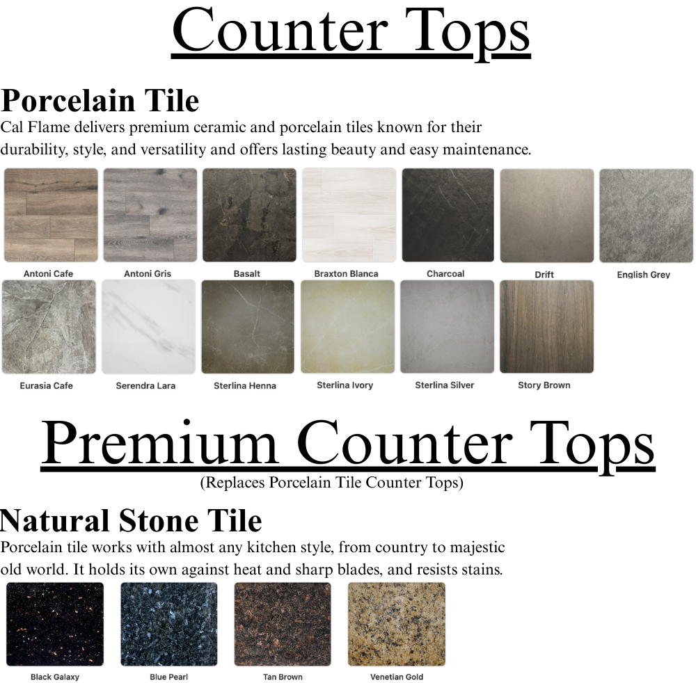 Base available in Stucco, Cultured Stone, or Natural Stone Tile