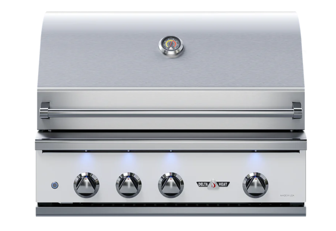Bring professional-grade performance and striking style to your outdoor kitchen with the Delta Heat 32-Inch White Outdoor Gas Grill. Crafted in California from 304 stainless steel and finished in a sophisticated white powder coat, this grill is engineered for durability, precision cooking, and effortless entertaining. Choose between the model with 3 main burners and a rotisserie or the model featuring 2 main burners, a rotisserie, and an integrated sear burner for steakhouse-quality searing.