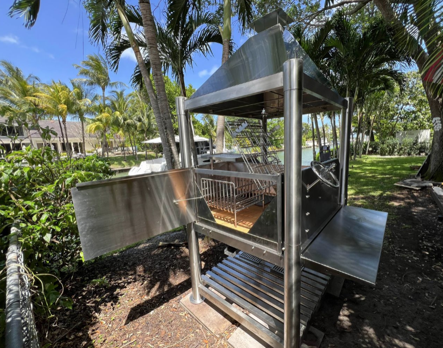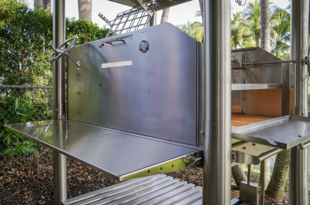 Tagwood's "The Beast On Steroids" Santa Maria Style Grill – 304 Stainless Steel delivers unmatched versatility and performance in an all-304 stainless steel build. With 3,363 sq. in. of total cooking area across six independent grilling zones, this model is designed for professional-grade, 360° open-fire cooking. From the clamp grill to the dual warming racks, every surface touching food is stainless steel — built for durability, precision, and authenticity.