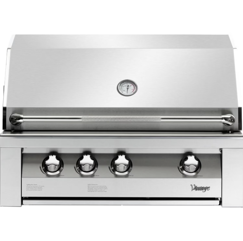 Step up your backyard entertaining with the Vintage 36-Inch Built-In Grill, a luxurious centerpiece crafted for serious outdoor chefs. Built from heavy-duty polished stainless steel, this grill blends refined design with professional-grade performance. Whether fueled by natural gas (VBQ36G-N) or liquid propane (VBQ36G-L), it delivers the precision, versatility, and power needed to master everything from sizzling steaks to slow-roasted perfection.