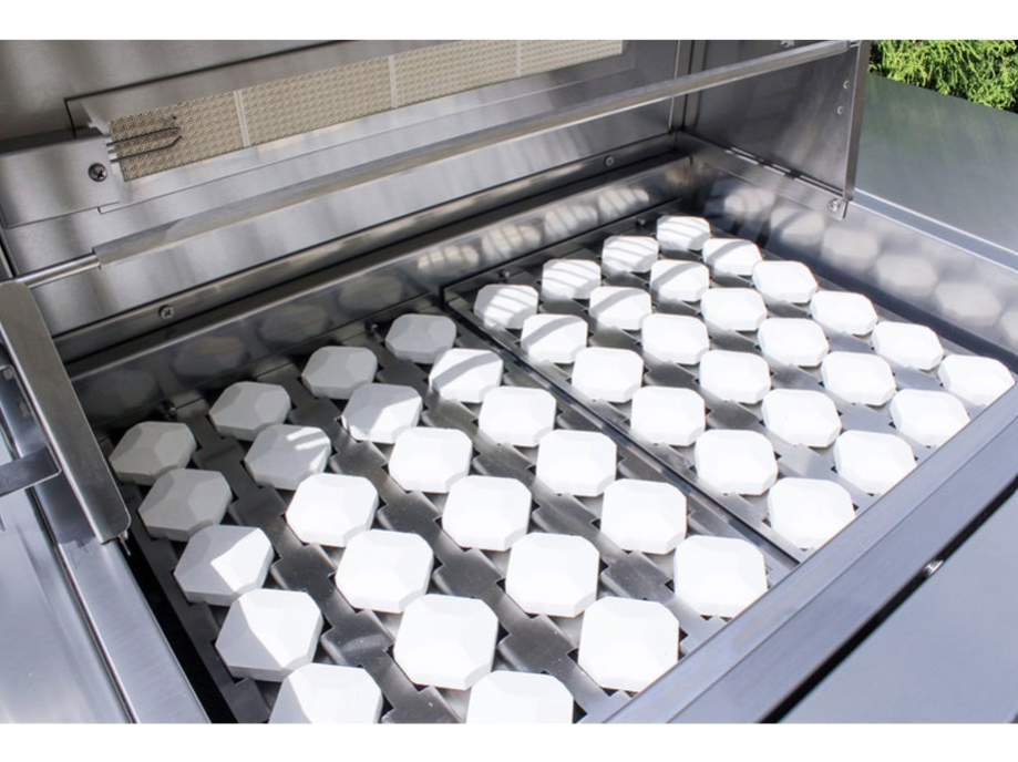 • Ceramic briquettes ensure consistent and even heating across the cooking surface