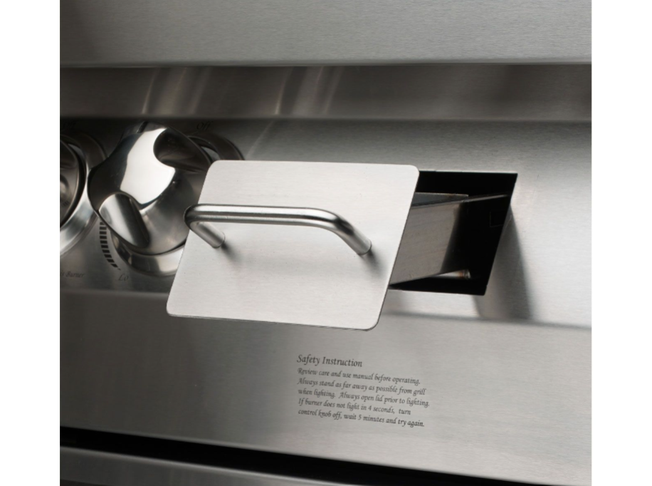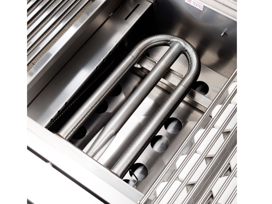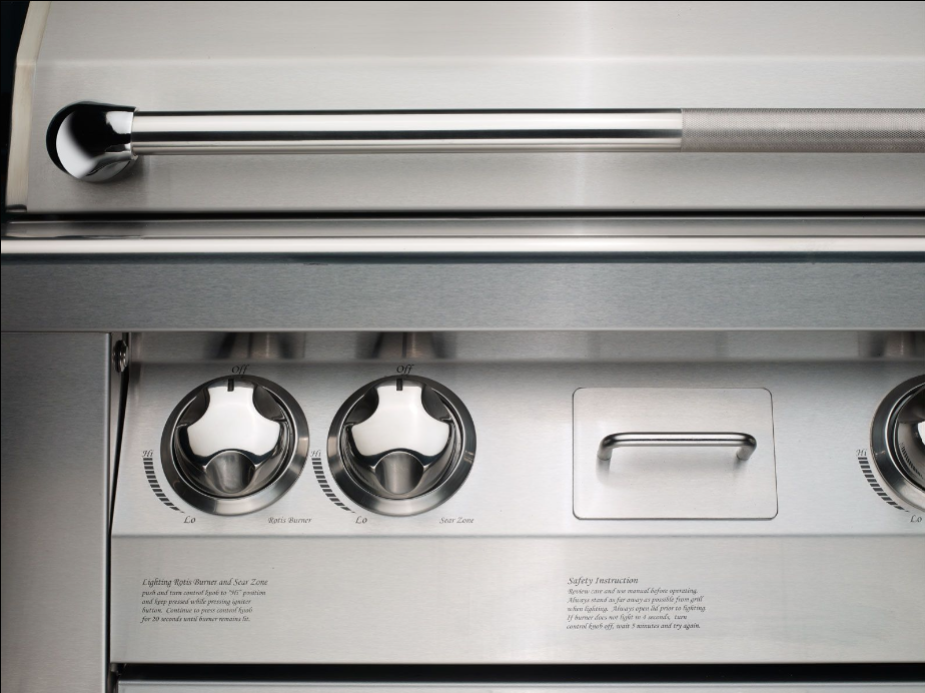 • 12,500 BTU flush-mounted infrared rotisserie burner with polished stainless steel grill grates