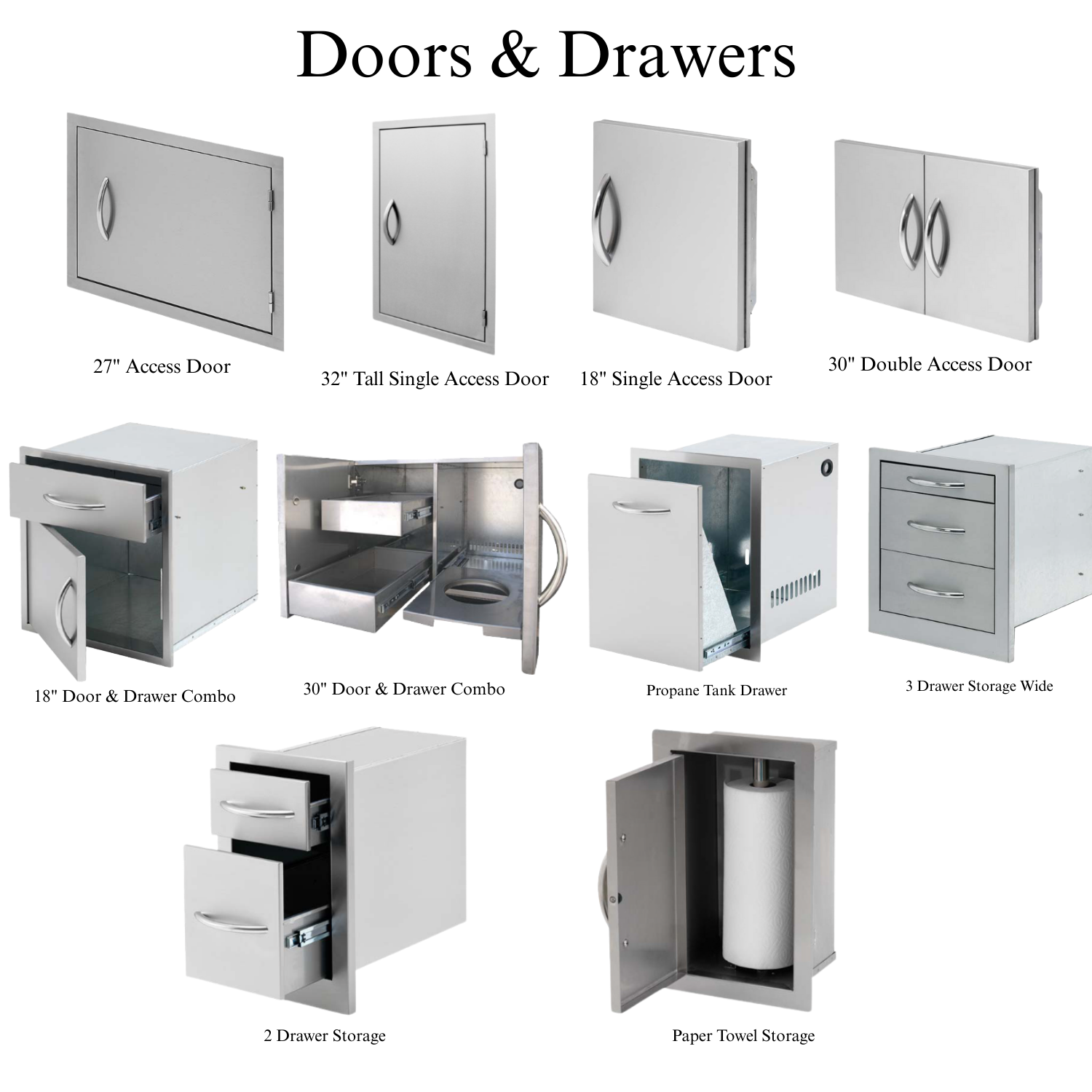 - Versatile Storage Spaces – Comes standard with an 18" Vertical Access Door, with available upgrades including a wider 27" Access Door, an 18" Single Access Door, or an 18" Door & Drawer Combo.