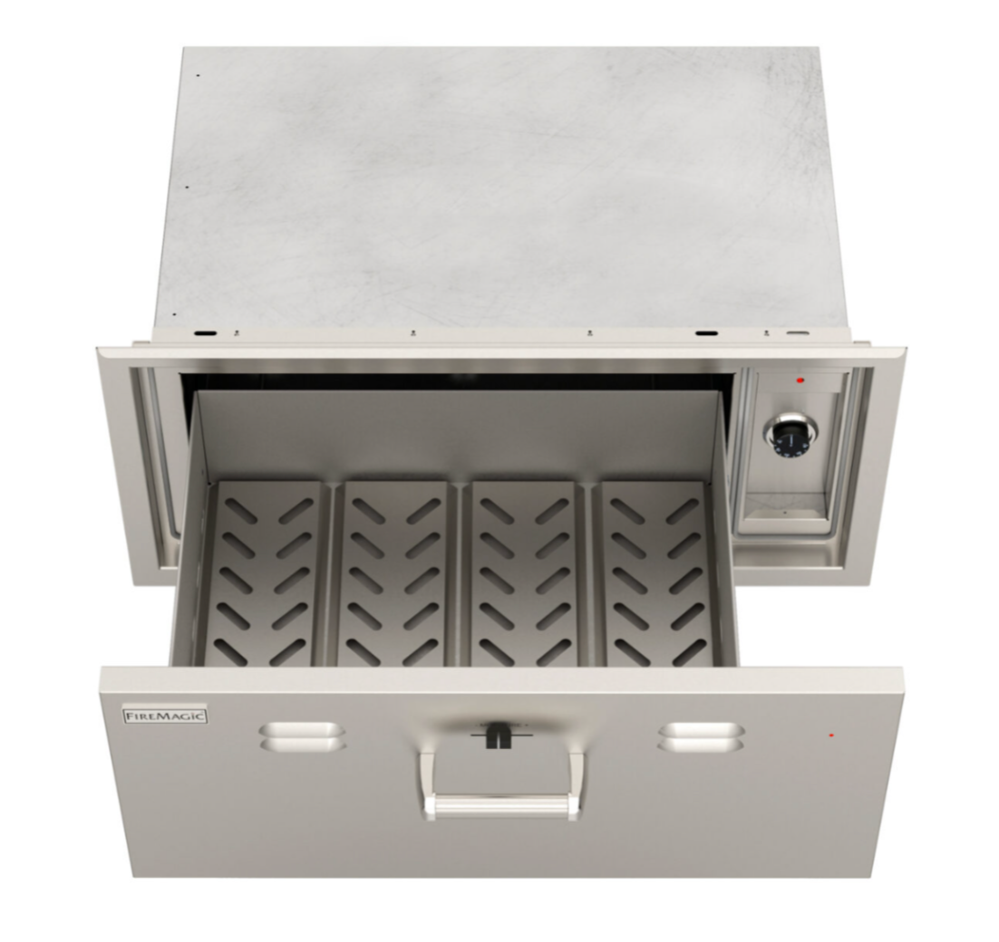 Elevate your outdoor kitchen with the Fire Magic® Flush-Mounted Electric Warming Drawer. Designed for seamless integration and reliable performance, this premium accessory keeps plates, serving dishes, and side items warm until you’re ready to serve. Built from durable 304 stainless steel, it delivers both durability and elegance, making it the perfect addition to any Fire Magic® outdoor setup.
