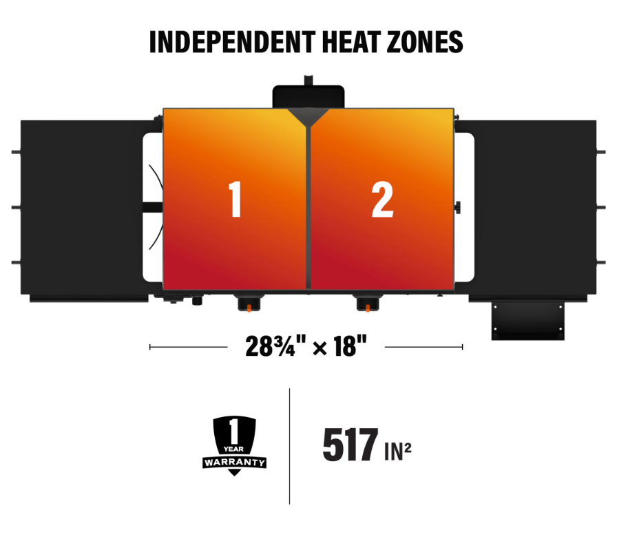 Two Independently Controlled Heat Zones – Cook a variety of foods at different temperatures simultaneously