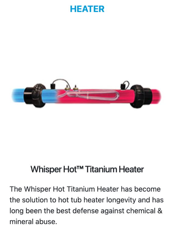 | Heater | 5.5 kW Whisper Hot™ Titanium Heating System |