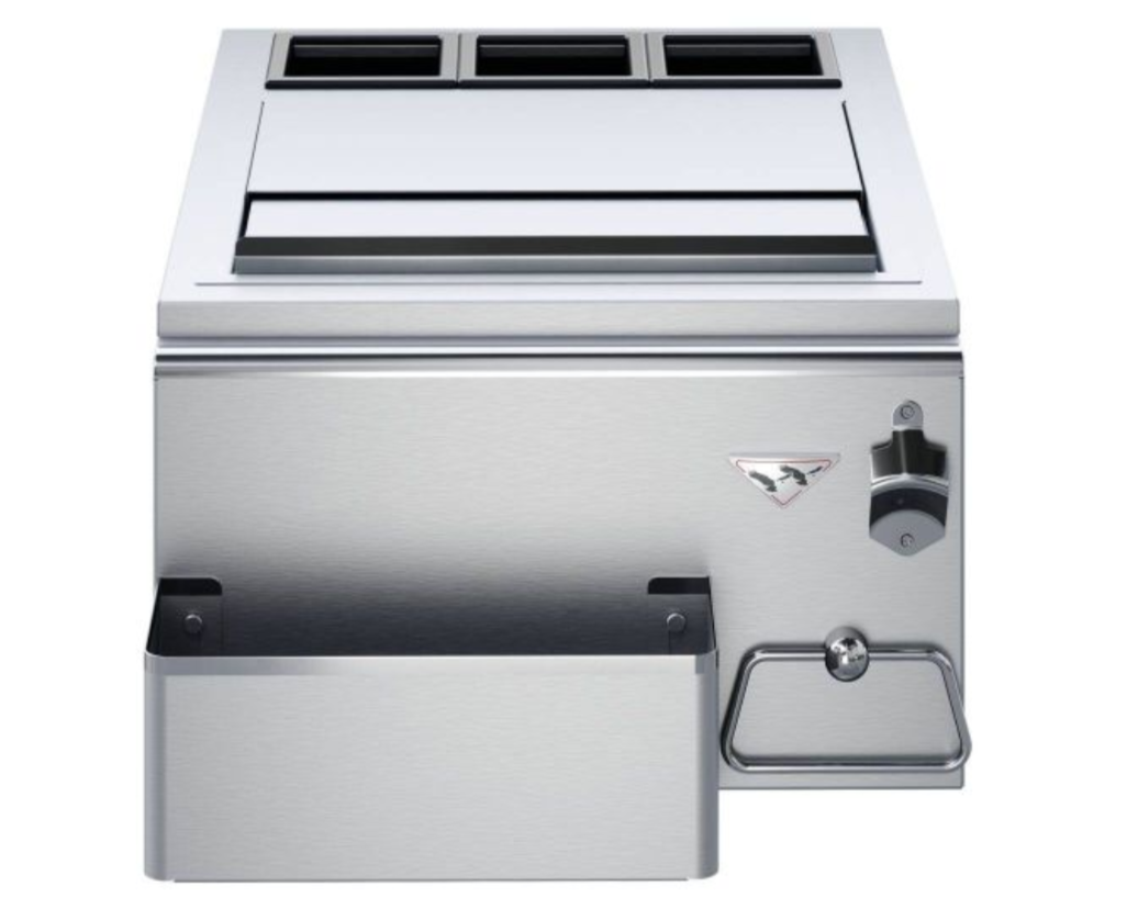 The Twin Eagles 18″ Outdoor Beverage Center is the perfect addition to any outdoor kitchen or entertainment space. Designed with three separate cooling compartments, a built-in stainless steel bottle opener and towel ring, and a 40-pound ice capacity, it keeps your favorite drinks chilled and ready to serve.