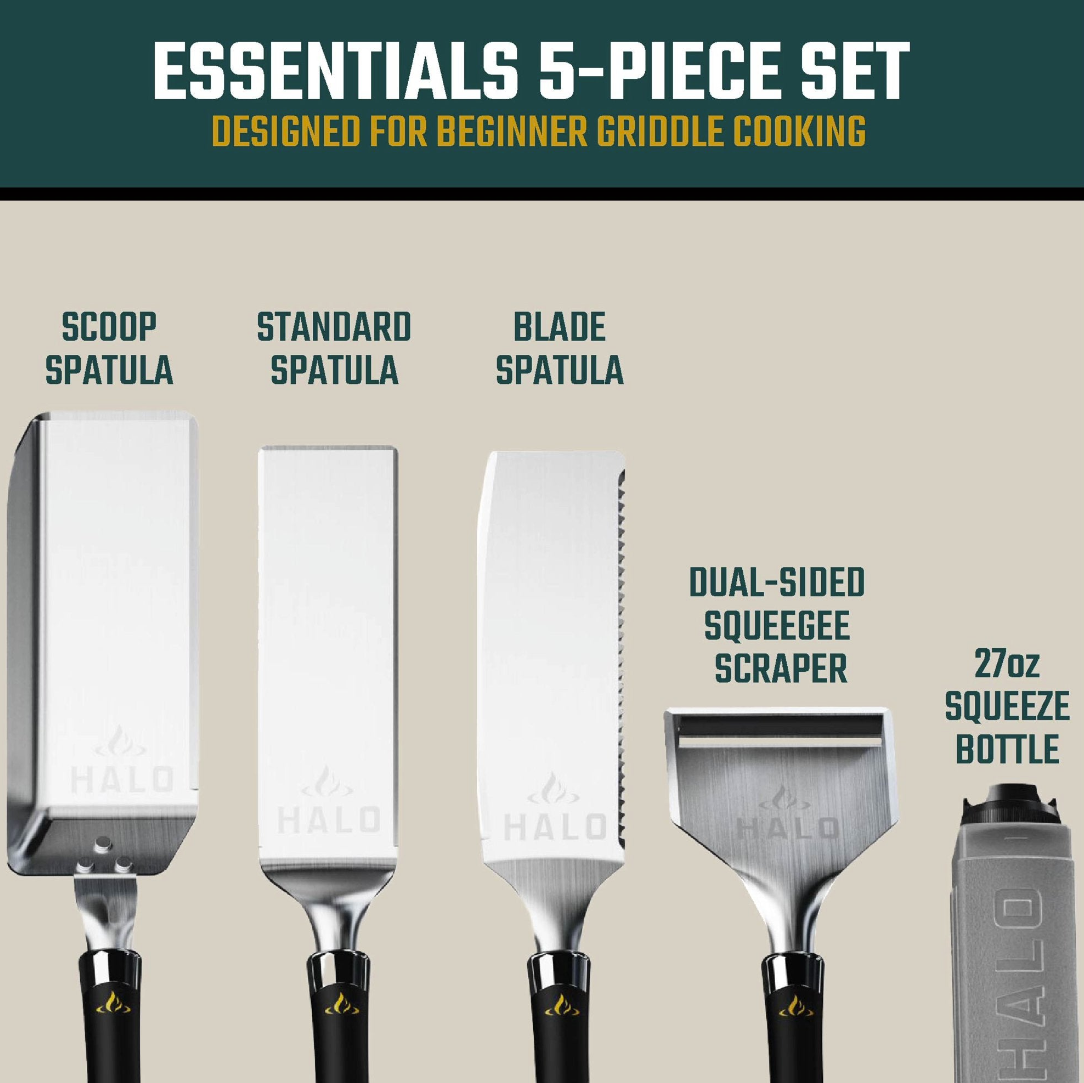 5-Piece Griddle Kit – Includes spatula, scoop spatula, blade spatula, squeegee scraper, and squeeze bottle