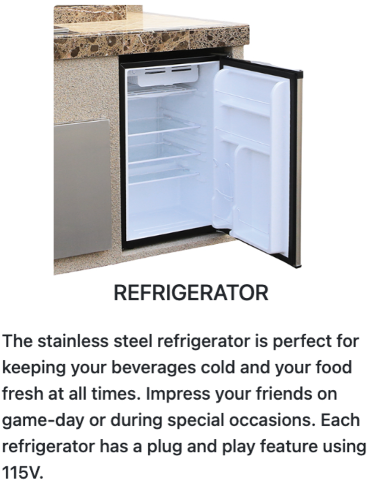 Further Customization: For those looking to take their outdoor kitchen to the next level, we offer custom upgrades such as adding a kegerator, installing a side burner, or incorporating decorative stucco designs like waves or trees. Simply place your order and leave a note requesting to speak with an ANJ Appliances sales associate, we’ll help bring your vision to life with personalized customization options.