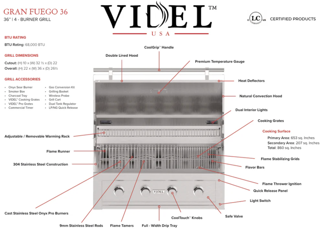 • Premium Performance; Gran Fuego 36 Grill with HeatWave Chamber™ and CoolTouch™ Knobs