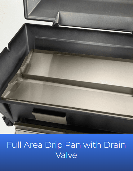 Full-Area Stainless Steel Drip Pan with Drain Valve – Reduces flare-ups and simplifies cleanup
