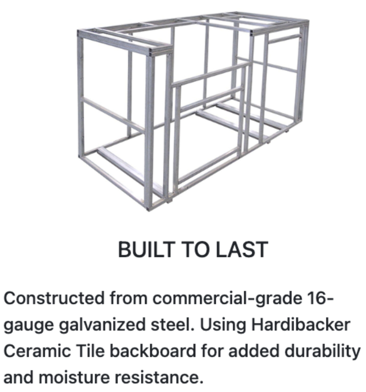 | Construction | 16-Gauge Galvanized Steel Frame + Hardibacker Ceramic Tile Backer Board |