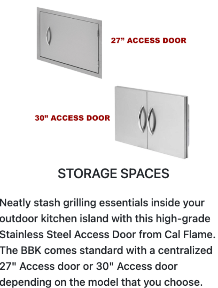 | Storage Access | 27" Access Door | 27" Access Door | 27" Access Door | 27" Access Door |