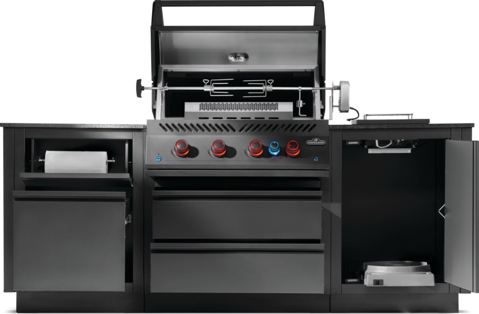 Transform your backyard into a true culinary destination with the Napoleon OASIS™ 300 Modular Island Kit. This premium, wing-shaped outdoor kitchen system combines a spacious grill station, ample storage, and professional-grade features to deliver the performance and luxury of an indoor kitchen—outside.