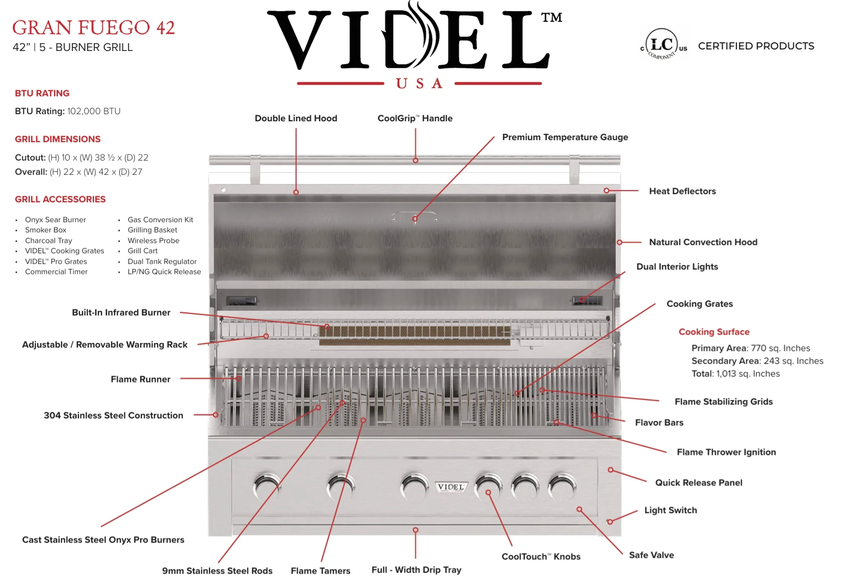 The Gran Fuego 42″ is more than just a grill—it’s a statement piece for those who demand professional-grade power, elegant design, and lasting performance. Ignite your passion. Elevate your cooking. Impress with every flame.